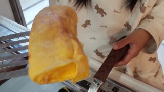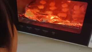 チーズ加熱するとどうなるか意見が分かれました。溶ける、カリカリになる。さあどちらでしょうか?